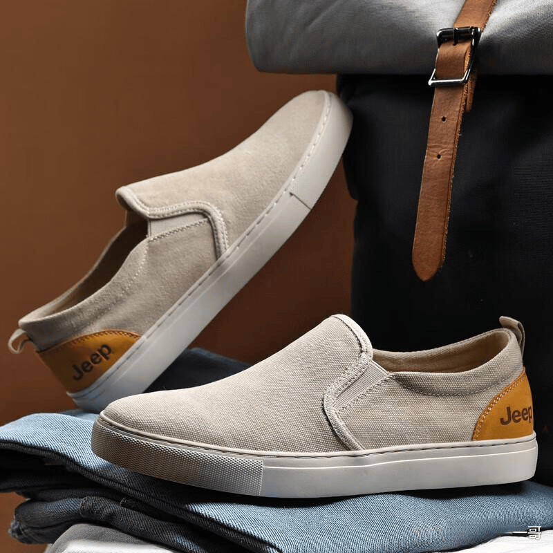 这款Jeep都市型格休闲鞋,鞋面采用织物帮面,内里是沙色织物,穿起来脚感超级舒服,就像在家里踩着柔软的毛巾一样,而且鞋垫是牛皮革材质,质感满分。2️⃣